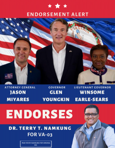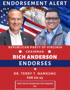Dr. Terry Namkung is running for Virginia’s 3rd Congressional District. Donate to the Official Website to support Dr. Namkung’s campaign for U.S. Congress! Conservative Veteran for Congress.